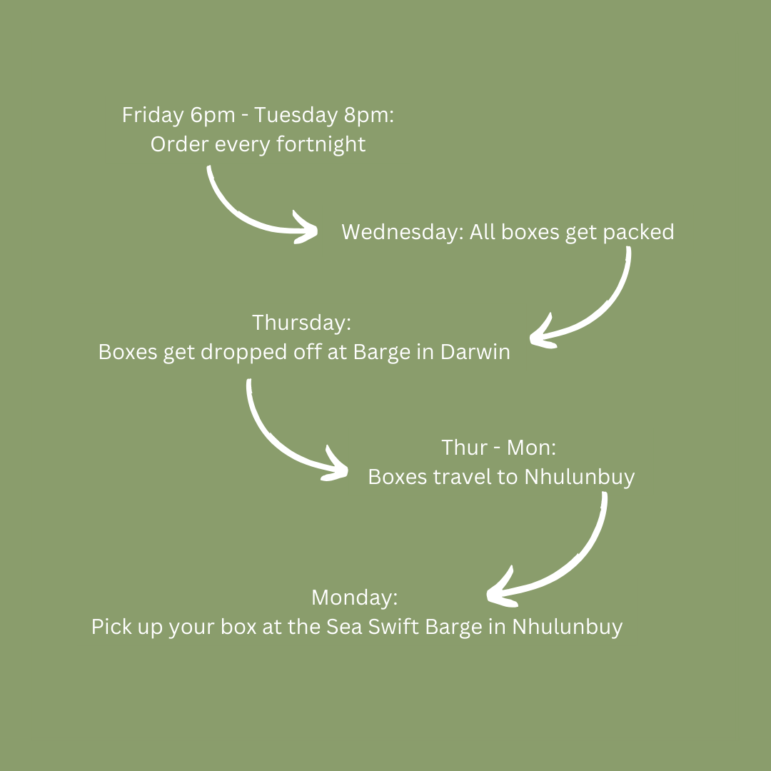 4. Pick up your fresh fruit & veg box from the sea swift barge in Nhulunbuy.